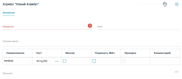 Нажмите на кнопку +. В рабочей области страницы отобразится интерфейс создания нового атрибута: