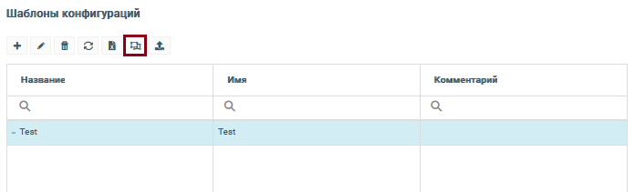 Нажмите на кнопку Загрузить. Выбранный шаблон конфигурации будет загружен в Платформу и отображен в списке шаблонов: