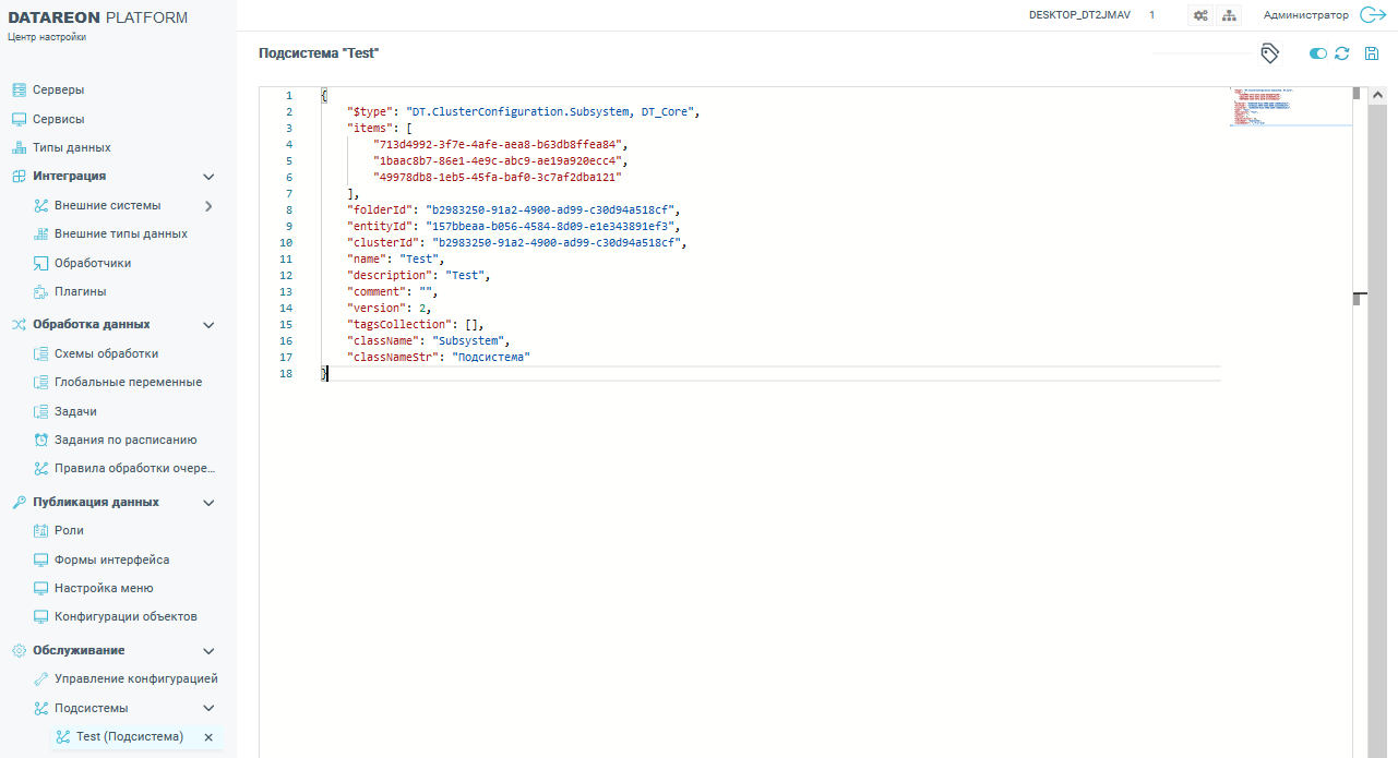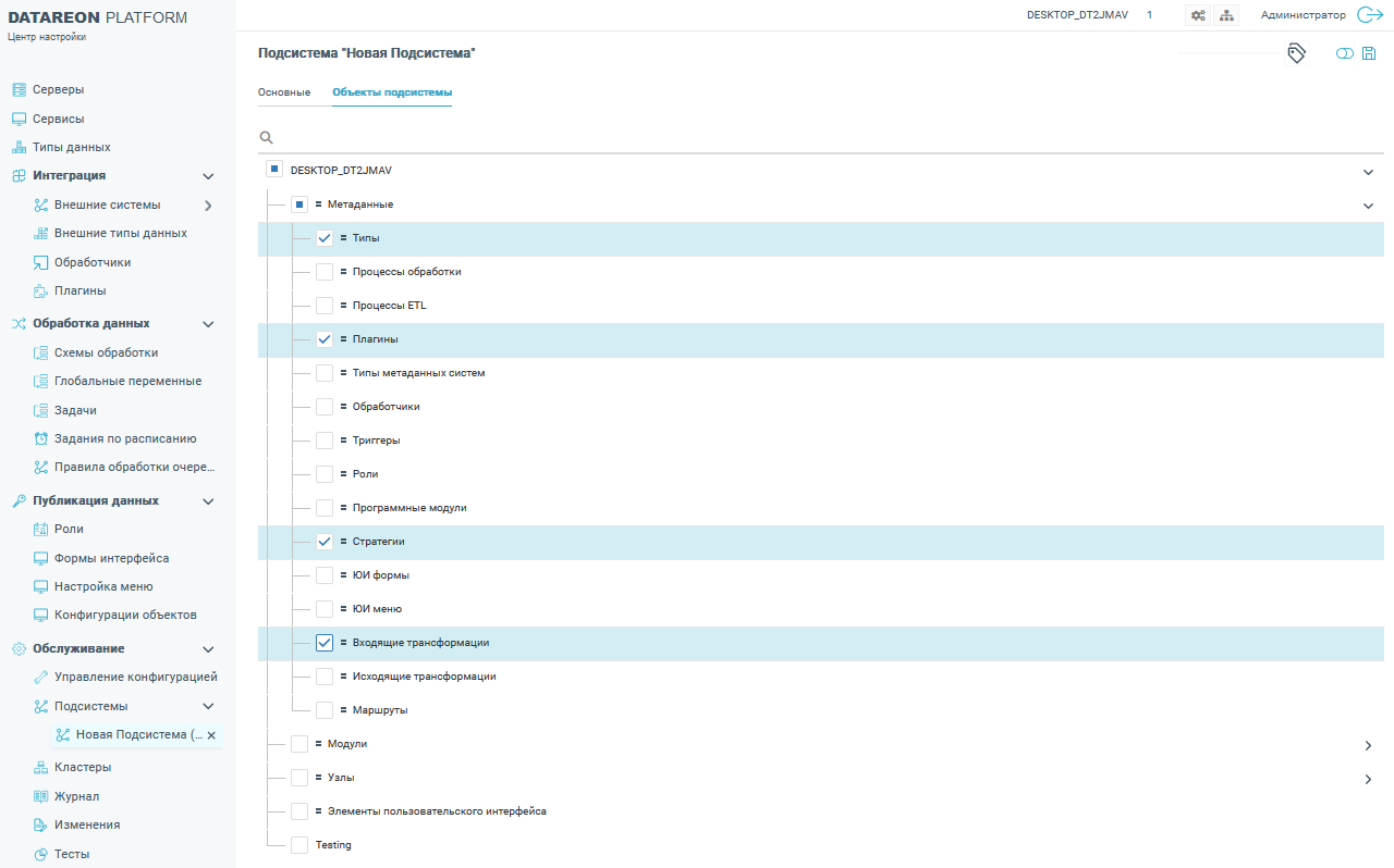 В ЦН перейдите в раздел Обслуживание -> Подсистемы.