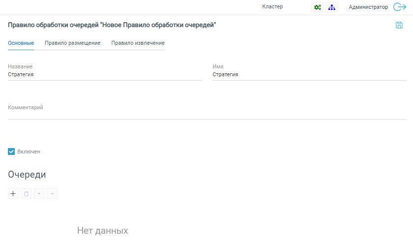 Список очередей задается на вкладке основные путем нажатия на кнопку Добавить поле. Данные имена очередей будут использоваться при описании правил размещения и извлечения. Имена не могут быть числовые.