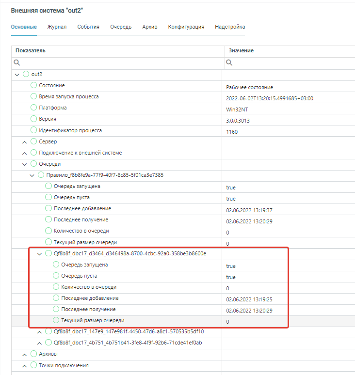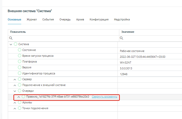После сохранения правило будет действовать для выбранной системы. Информация об очередях выведено в центре мониторинга и обновляется в режиме реального времени.