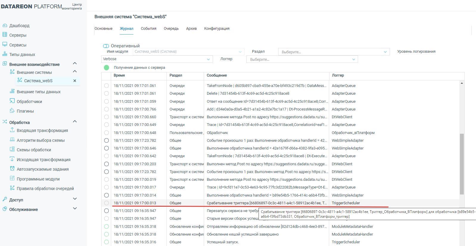 Необходимо указать какие схемы обработки будут запускаться. Запуск задания фиксируется в центре мониторинга в журнале системы, к которой задание привязано.