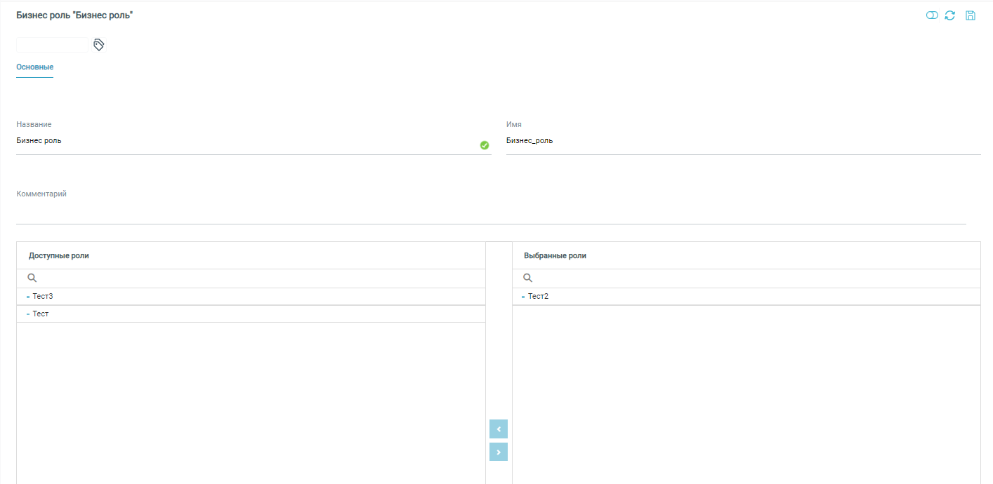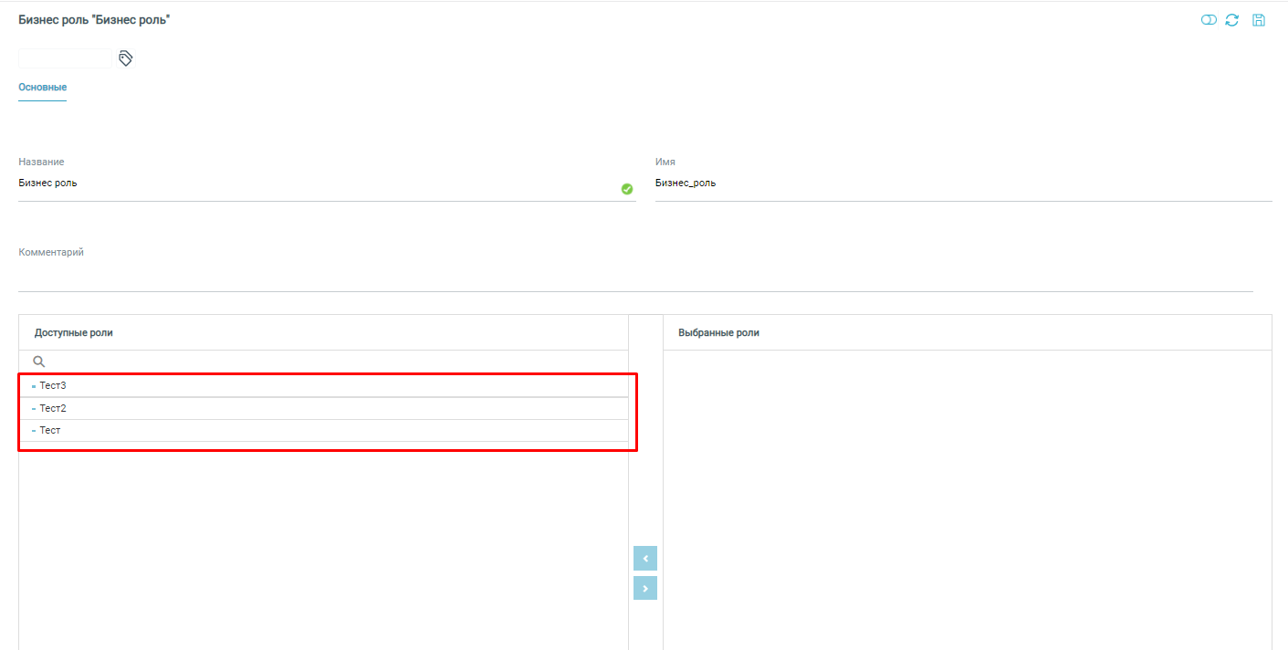 1. Для определения ролей для этой бизнес-роли, в левой части таблицы выберите роль и нажмите на кнопку .