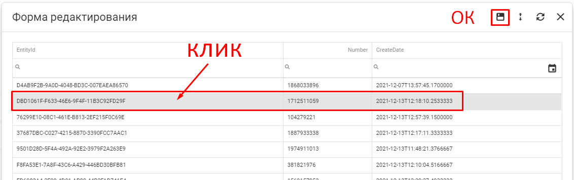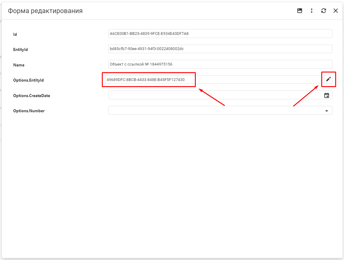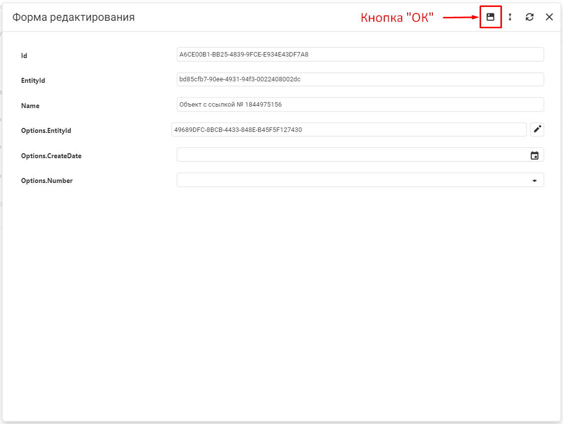 В UI нажатие на эту кнопку будет переводить на всплывающую страницу формы редактирования. В верхней части формы доступна кнопка ОК для применения изменений, кнопка Развернуть, Кнопка Обновить и кнопка Закрыть.