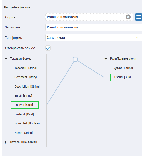 • зависимая - содержимое вложенной формы связано с основной формой, можно настроить маппинг;