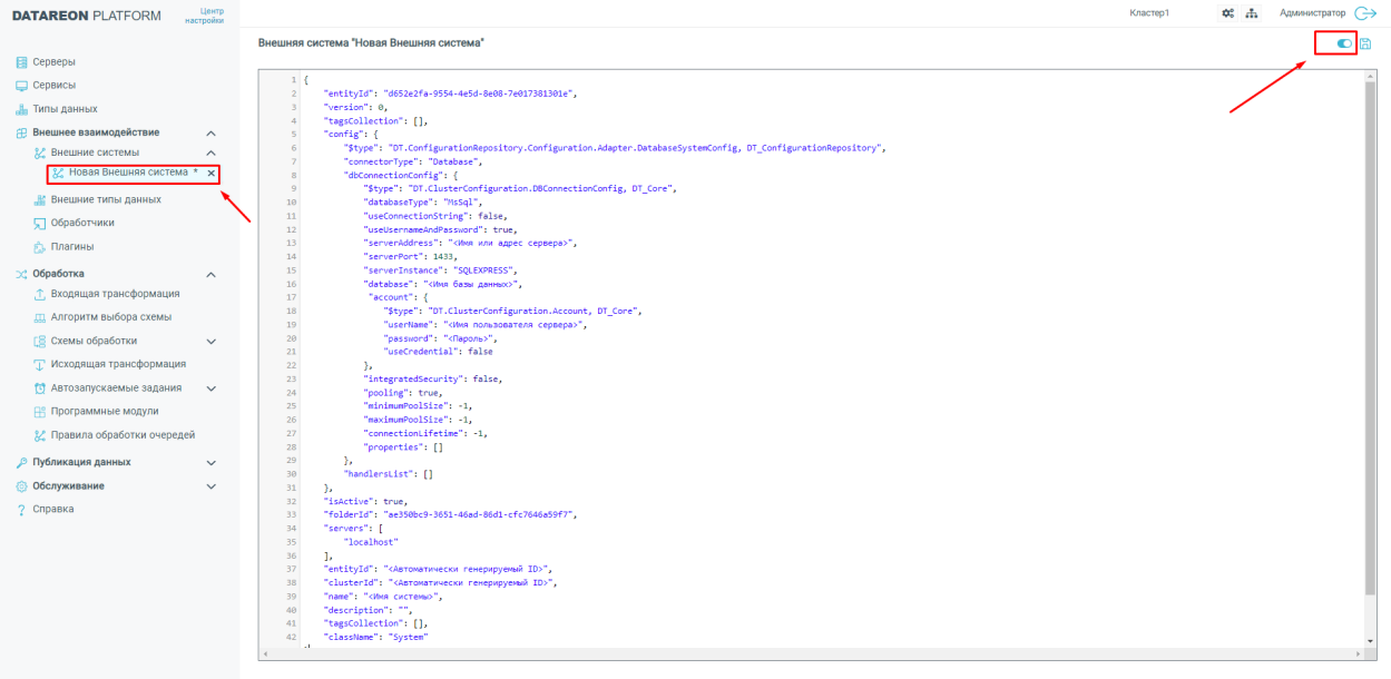 В ЦН перейдите в раздел Интеграция -> Внешние системы.