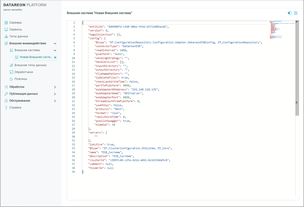 Для настройки внешней системы в Datareon ESB: