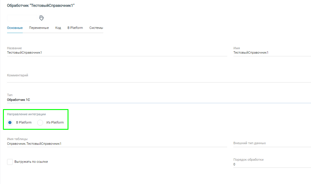 Также для обработчиков с направлением В Platform есть возможность указать порядок обработки: