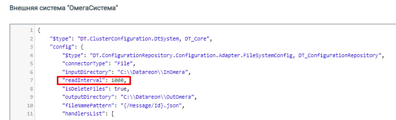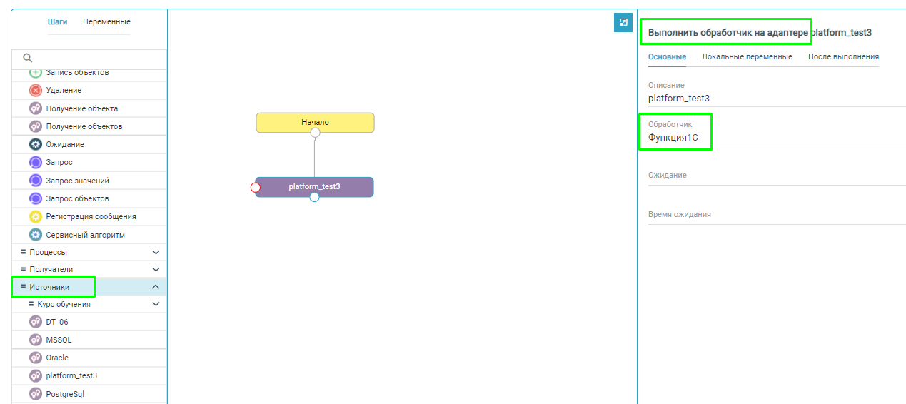 Поле Таймаут вызова: введите значение таймаута вызова обработчка, значение по умолчанию - 10000.