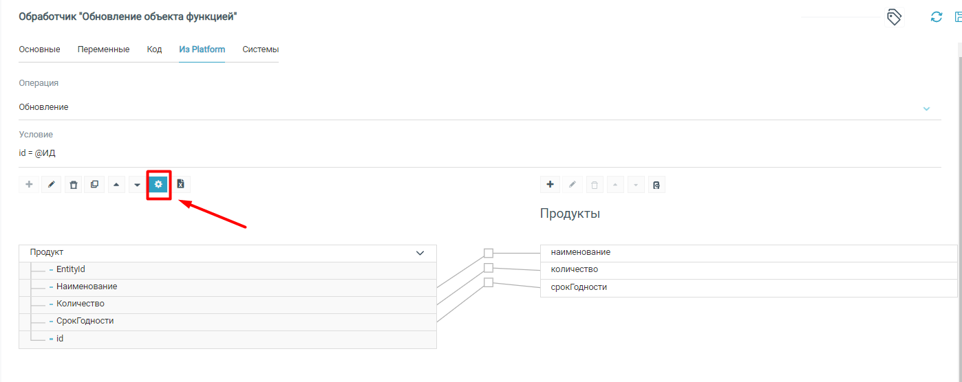 Для операции Выборка, Вставка, Обновление существует возможность настройки полей, участвующих в операции с помощью инструмента «Маппер». Для настройки нужно в Маппере добавить поля таблицы которые будут участвовать в операции и настроить маппинг полей в переменную с вкладки В Platform или Из Platform в зависимости от направления интеграции. Если в Маппере настроены поля таблицы, то в операции будут участвовать только эти поля таблицы.
