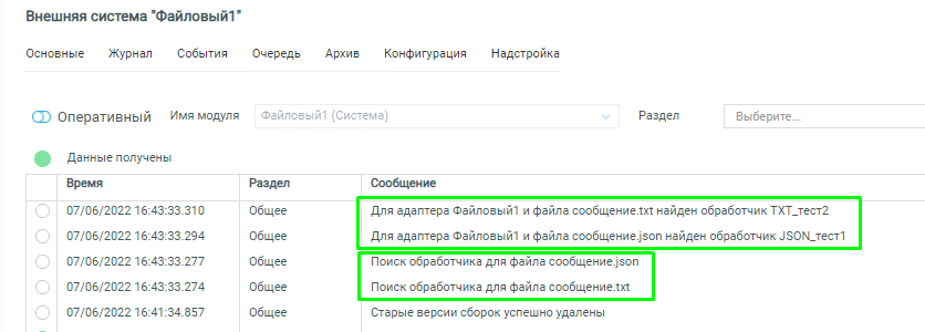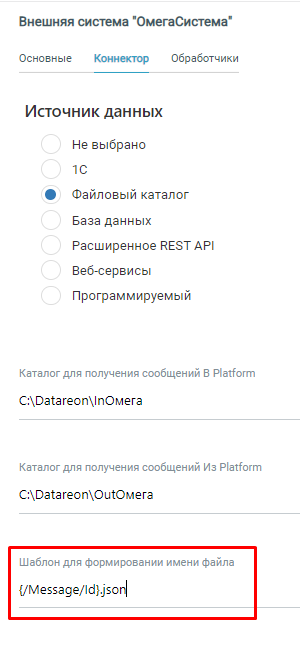 Без обработчика сообщение запишется в файл с именем, сформированным согласно шаблону, указанному в настройках коннектора. В файле будет такое тело сообщения, каким оно было передано в Платформу из другой системы.