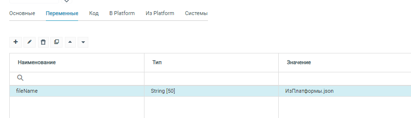 На вкладке Код доступны переменные из вкладки Параметры и Из Platform: система позволяет их изменять: