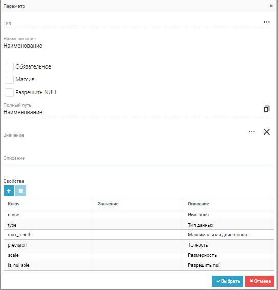 Если тип определен в пункте 1, и он отличается от типа переменной из вкладки В Platform, то переменная принимает значение null (если установлен параметр разрешить null) или создается пустой объект.