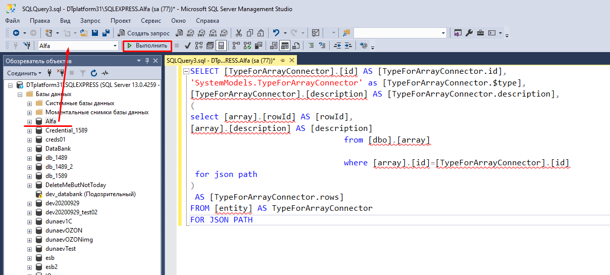 Пользовательский запрос - будет выполняться SQL запрос с вкладки Код.