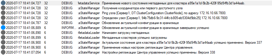В Журнале действий пользователя (при использовании Guard - в журнале Guard) сохраняется применение стабильной конфигурации для кластера и центров настройки (настройки репликации).