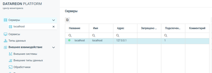 Если серверы подключились в кластер успешно, то в Центре мониторинга на вкладке Серверы индикаторы отображаются в зеленом цвете.