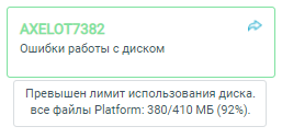 При достижении порога в 90% - появляется плитка со статусом Предупреждение о нехватке места.