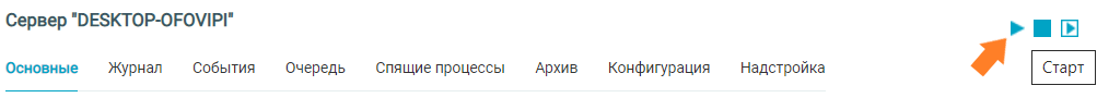 Кнопка Старт предназначена для запуска данного сервера, если он был остановлен или не запущен.