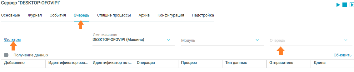 На вкладке Очередь можно задать фильтр отбора сообщений: