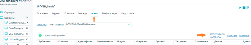Вкладка Сообщения отображается для сервисов, при создании которых было в настройке было указано Хранилище сообщений.