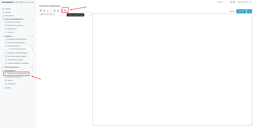 В Центре настройки в меню Обслуживание:=>Управление конфигурацией нажмите значок Открыть диагностику, слева вверху: