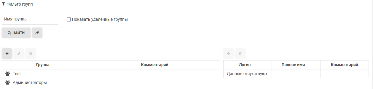 Для отображения в списке групп, удаленных из системы, установите флажок Показать удаленные группы.