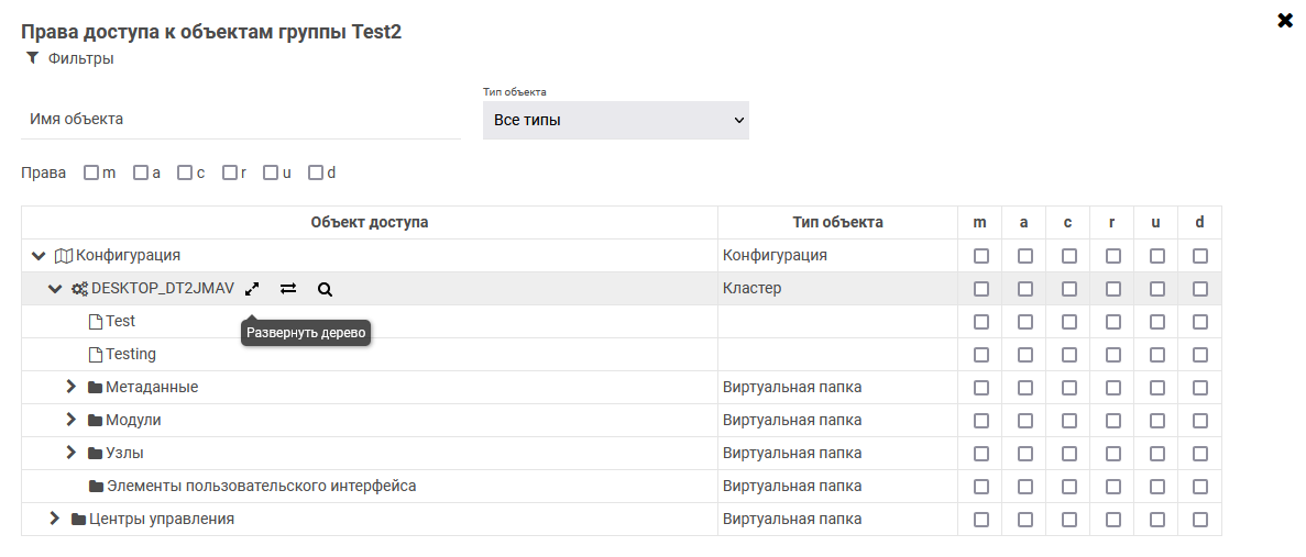 Для просмотра прав доступа к объектам перейдите в раздел Права доступа к объектам.