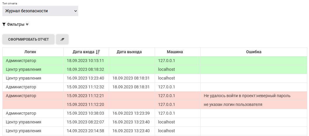 Нажмите на кнопку Сформировать отчет. В рабочей области страницы отобразится отчет, сформированный по установленным критериям.