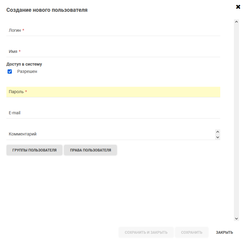 Для предоставления пользователю доступа в систему, установите флажок Разрешен.