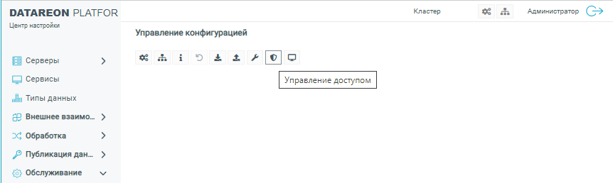 Для перехода в консоль управления доступом Datareon Security, на панели инструментов нажмите на кнопку Управление доступом.
