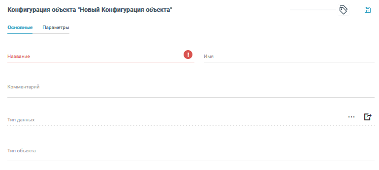 Нажмите на кнопку +. В рабочей области страницы отобразится интерфейс создания новой конфигурации, содержащий две вкладки: Основные и Параметры: