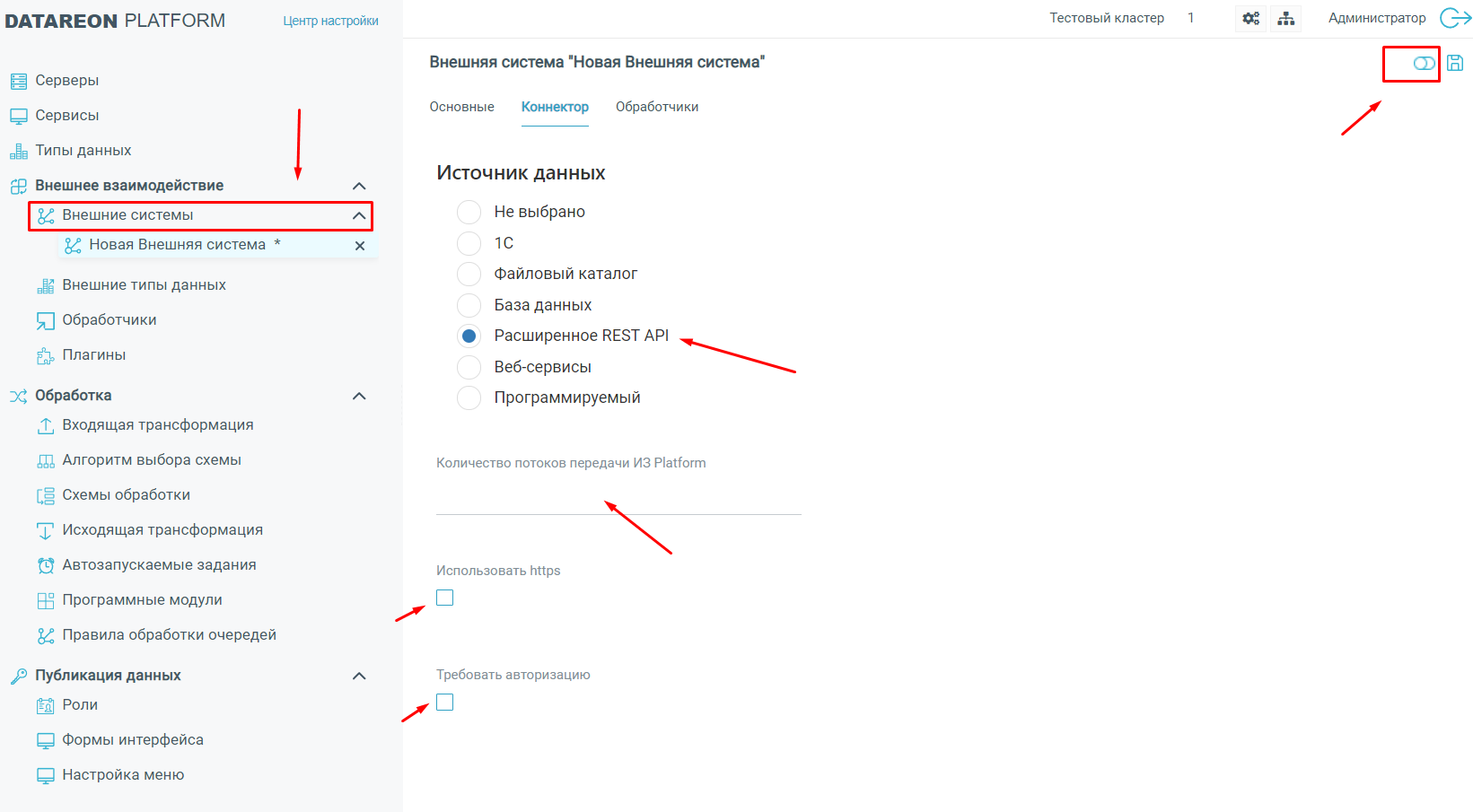 REST API коннектор внешней системы даёт возможность подключить к системе собственный REST сервис с методами, описанием типов.