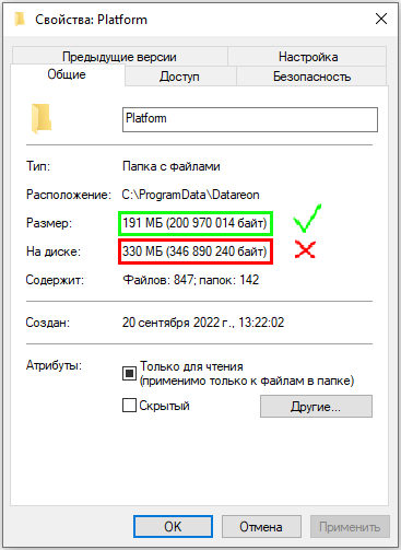 totalMaxSizeMb - максимальный размер папки Platform. Путь до папки по умолчанию: C:\ProgramData\Datareon\Platform;
