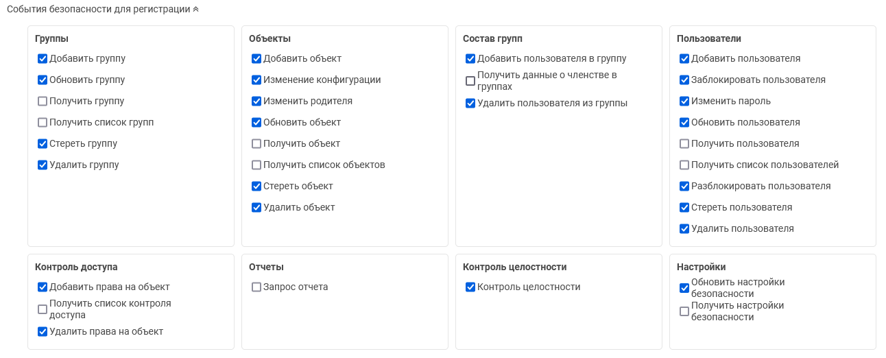 В рабочей области страницы находятся следующие дополнительные настройки управления доступом к Платформе, журнала событий и прочие настройки: