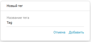 Внесите название тега и нажмите на кнопку Добавить. В результате тег будет отображен в панели управления: