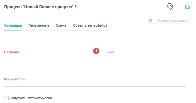 Кнопка Проверить процесс предназначена для запуска механизма проверки конфигурации открытого бизнес-процесса.