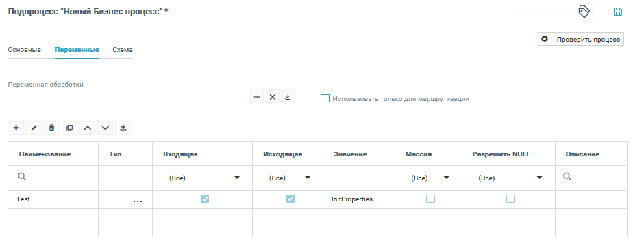 Раздел предназначен для создания сложных и простых переменных для выполнения бизнес-процесса.