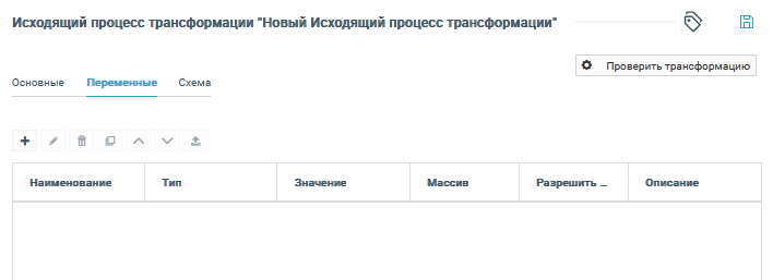 Окно исходящего процесса трансформации содержит следующие элементы: