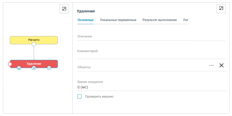 Для удаления объекта необходимо произвести следующие настройки шага на вкладке Основные: