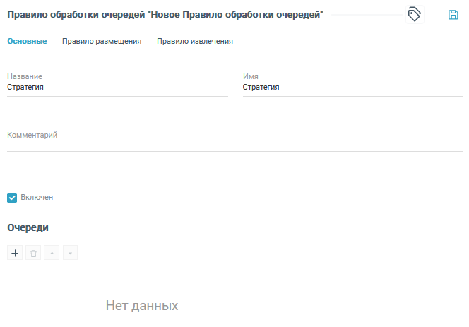 Для добавления нового правила перейдите в раздел Обработка данных → Правила обработки очередей и нажмите на кнопку + в рабочей области.