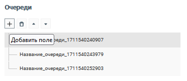 Список очередей задается на вкладке Основные путем нажатия на кнопку Добавить поле. Названия очередей будут использоваться при описании правил размещения и извлечения.