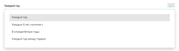 Конструктор позволяет гибко настроить расписание. Для настройки доступны все составные части даты: