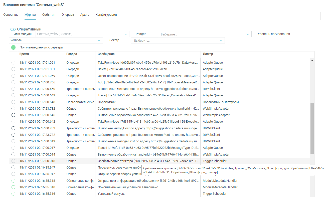 Отследить запуск заданий можно в Центре мониторинга и администрирования в журнале системы, для которой назначено задание на вкладке Системы.