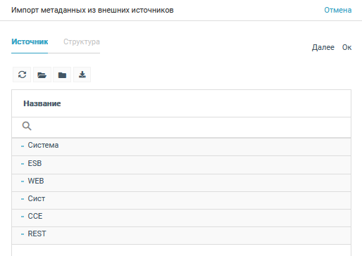 После нажатия на кнопку Далее система произведет загрузку структуры из внешнего источника. Выберите требуемую структуру и нажмите на кнопку Ок.