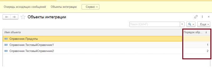 Для обработчиков с направлением В Platform есть возможность установить параметр Порядок обработки, который отвечает за приоритетность выгрузки объектов из 1С:
