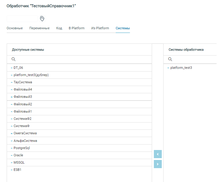 На вкладке отображаются системы, к которым будет добавлен обработчик.