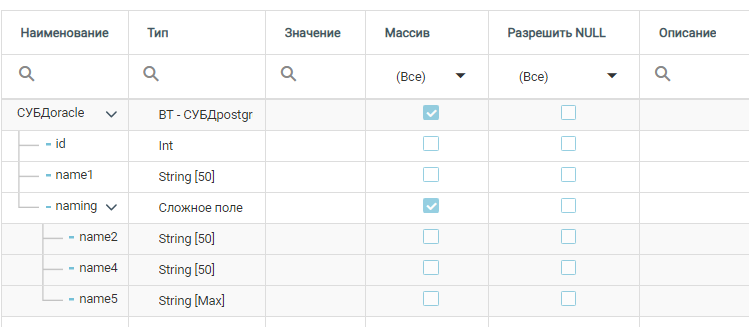 где naming - имя сложного поля массив внутри массива.