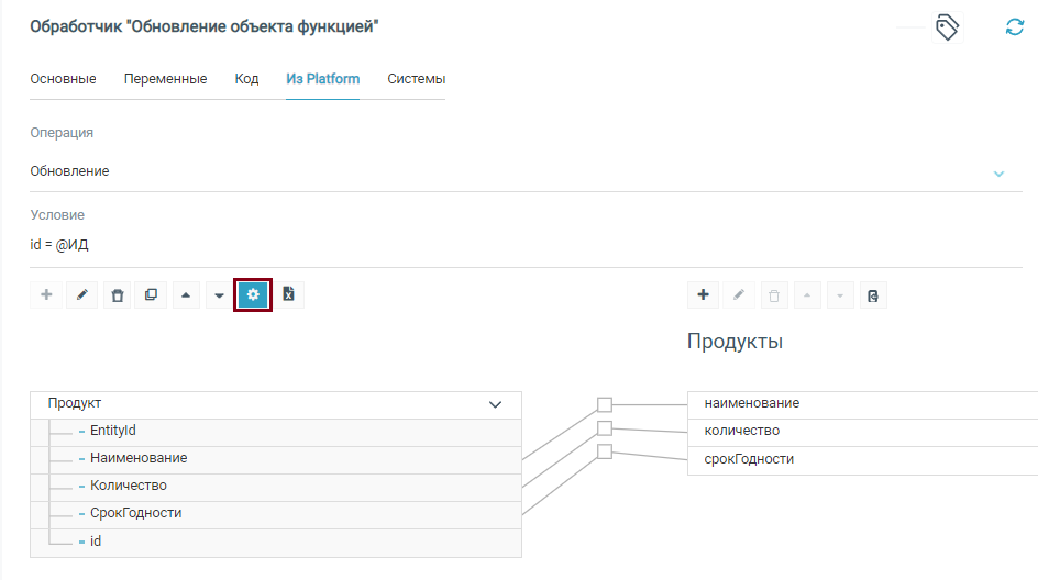 Для обработчиков СУБД система предоставляет дополнительный набор операций, предназначенных для использования вместо SQL кода. В направлении Из Platform система предлагает выбрать следующие виды операций: