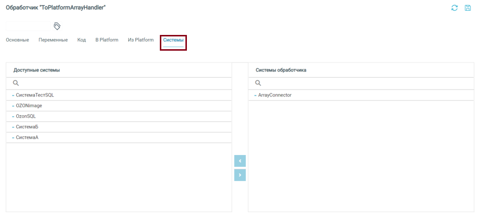 На вкладке можно выбрать Внешние системы, с которыми будет работать обработчик: