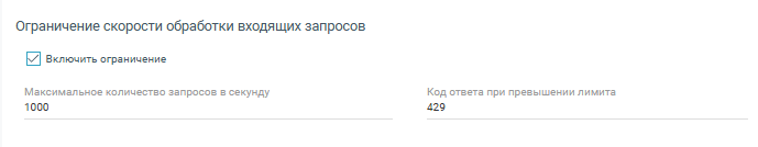 Введите значение ограничения в поле Максимальное количество запросов в секунду. Максимальное количество запросов в секунду: диапазон значений 1-1000000000 (значение по умолчанию - 1000).